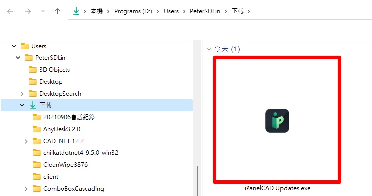 〔複製〕iPanelCAD Updates.exe,然後〔貼上〕至iPanelCAD AP的安裝路徑,預設安裝路徑為C:\Program Files (x86)\iPanelCADAP\ ( 64位元 ),C:\Program Files\iPanelCADAP\ ( 32位元 )